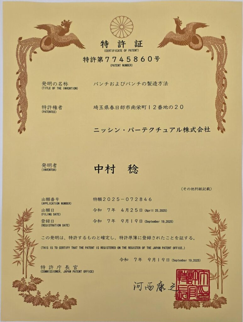 実はこれ、ニッシン・パーテクチュアルにとって 創業以来“初めて”の知的財産 なのです